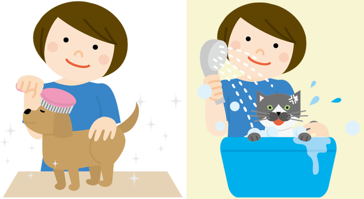まずは花粉の多い日や多い時間の外出を避けることが一番で はありますが、飼い主さんの服や靴についてきた花粉を部屋の中に持ち込まないことも大切 です。また、わんちゃんやねこちゃんにお洋服を着せてあげたり、ブラッシングやシャンプー をしてあげるなど、皮膚を清潔に保つことも大切です。お風呂やブラッシングが嫌 いな子は、濡らしたタオルやシャンプーシートなどで身体をふくだけでも十分対策 になります。
